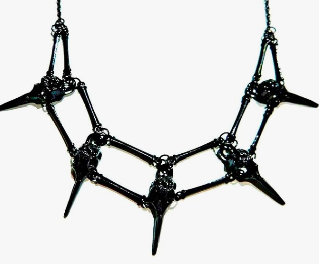 A striking black choker embellished with bird skulls, exuding a gothic allure and adding a touch of dark elegance to your ensemble.