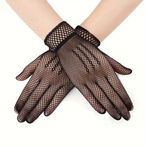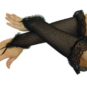 Long half-finger lace gloves with ribbon lace-up detailing, blending elegance with a touch of Victorian charm for a sophisticated accessory statement.