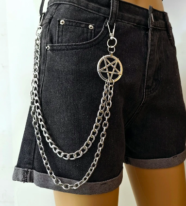 This silver chain has two tiers and a pendant in the form of a pentagram. With this gothic accessory, you can easily decorate any of your clothes and make them look even more interesting.