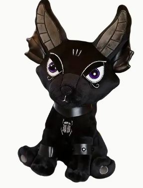 The keeper of the dead just got a whole lot cuter! Anubis is covered in plush, huggable fur with vegan leather trims and Egyptian motifs including a scarab collar and Eye of Horus embroidery.